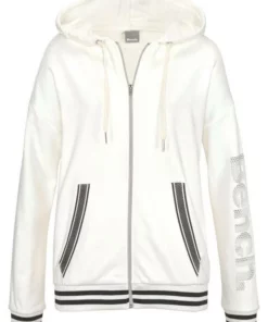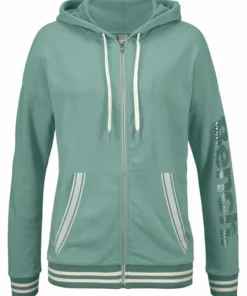 Bench. Kapuzensweatjacke mit gestreiften Bündchen und Glanzprint Grau-meliert, Apricot, Mint