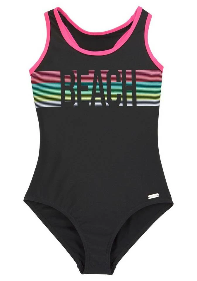 Mit dem coolen Badeanzug von Bench bist du auch beim Schwimmtraining top gestylt. Der Schwimmsuit setzt mit seinen sportlichen Trägern, dem Streifendruck und dem Statementprint im angesagten Retrodesign auf einen aktuellen Look. Die kontrastfarbenen Paspeln an den Trägern runden die angesagte Optik des Einteilers ab. Ein kleines Label aus Metall ziert den Beinausschnitt des Kinderbadeanzugs. Das elastische Material garantiert dir hohen Tragekomfort ohne zu zwicken. Modisch gesehen um Längen voraus: der Badeanzug von Bench. Obermaterial: 80% Polyamid, 20% Elasthan. Futter: 100% Polyester.
