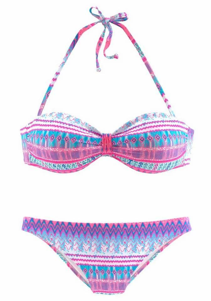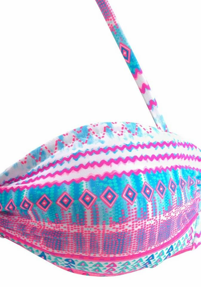 Mit seinem trendigen Printdesign verbreitet der Bandeau-Bikini von Bench auf den ersten Blick gute Laune. Das Bikinioberteil lässt sich dank der abnehmbaren Träger als schicker Neckholder oder als cooles Bandeau-Top tragen. Bei beiden Varianten ist guter Halt dank der seitlich eingearbeiteten Stäbchen garantiert. Herausnehmbare Cups ermöglichen eine individuelle Passform. Ergänzt wird das angesagte Top durch eine stylische, seitlich schmal geschnittene Bikinihose. Sommer-Feeling fürs ganze Jahr – im coolen Bandeau-Bikini von Bench! Obermaterial aus 90% Polyamid, 10% Polyamid. Futter aus 82% Polyamid, 18% Elasthan.