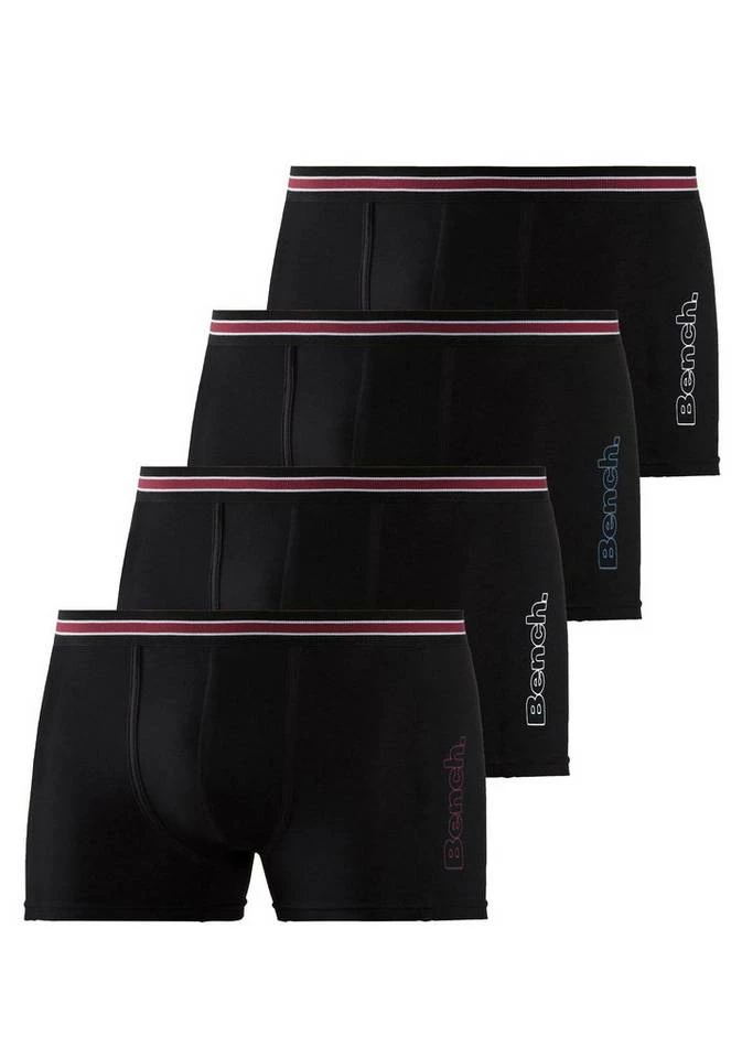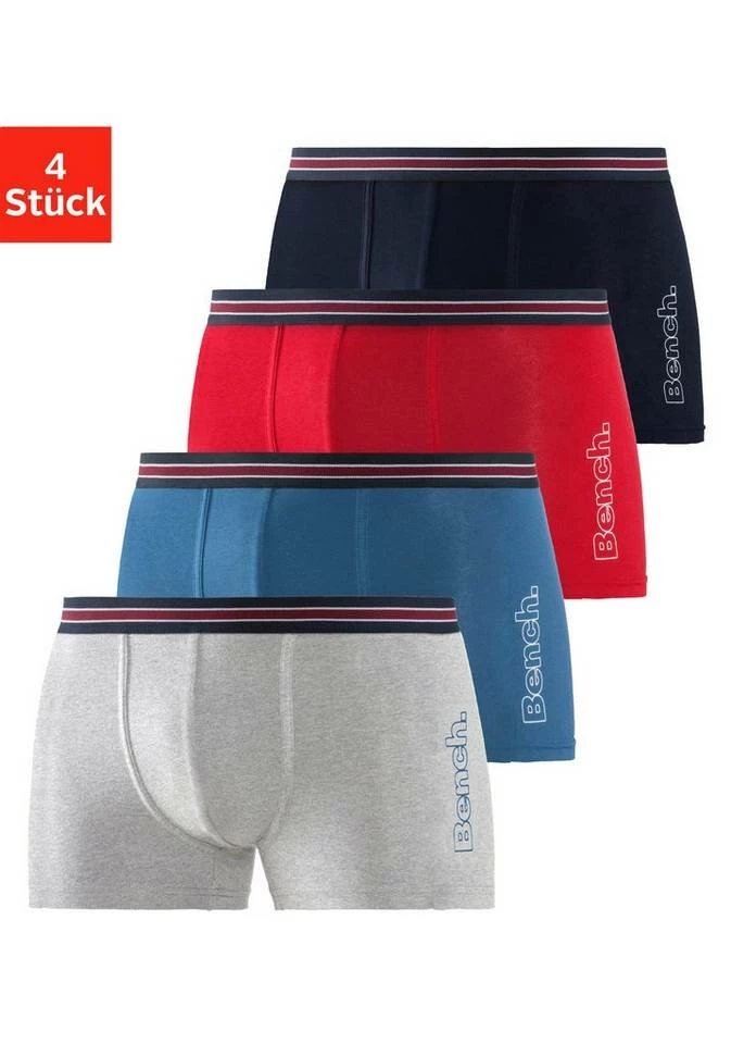 Haben einiges zu bieten – die Boxer von Bench im praktischen 4er-Set! Fashion-Mittelpunkt der einfarbigen Boxershorts ist der mit einem Streifendesign versehene elastische Webbund, toll auch der Frontbereich mit seinen sportlichen Paspelierungen, ebenso wie der Logodruck links auf dem Bein. Die elastische, faltenfreie Baumwollqualität sorgt für ein tolles Tragegefühl. Wenn du dir etwas fürs Büro-Outfit mit eher engen Hosen gönnen willst, dann bist du mit den Boxern von Bench jedenfalls bestens beraten.