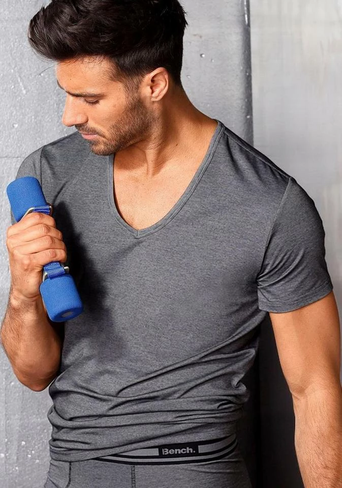 Ein unschlagbares Shirt! Das V-Shirt von Bench für Herren punktet mit angenehmer Qualität. Dank eines innovativen Mixes aus feuchtigkeitsregulierendem Coolmax® und einer elastischen Ausrüstung mit weicher Baumwolle wird Männern jeden Tag idealer Tragekomfort geboten. Mit dem klassischen V-Ausschnitt und der komfortablen Schnittführung präsentiert sich das Kurzarmshirt als unverzichtbarer Alltagsbegleiter. Ob als entspannter Casual-Style zur Jeans oder als Basic unter einer Sweatjacke – mit dem V-Shirt von Bench ist Wohlfühlen angesagt!