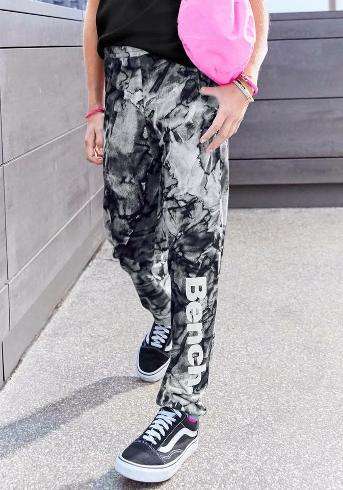 Batik ist back! Die Haremshose von Bench für Mädchen landet zurecht ganz oben auf der Fashion-Wishlist! Die Jogpants gewinnen mit dem aufregenden, individuellen Batikmuster viele Fans. Speziell der komfortable Stretchbund sorgt für einen optimalen Sitz bei erhöhtem Wohlfühlfaktor. Auch der plakative Markenschriftzug an der Seite zieht zurecht alle Augen auf sich. Praktischen Stauraum für kleine Alltags-Essentials wie Smartphone und Schokoriegel halten die seitlichen Bananentaschen der Hose bereit. Unbeschwerter Komfort mit dem Extra an Gemütlichkeit wird dank des legeren Tapered-fits mit stretchigen Abschlüssen sowie der griffigen, weichen Sweatverarbeitung zuteil. Der Layering-Look mit einem Ripptop, einem Cropped-Shirt und Lederschnürern lässt die Printhose besonders gut zur Geltung kommen. Die Haremshose von Bench für Mädchen wird schnell zu den Stil-Lieblingen deiner Tochter gehören!