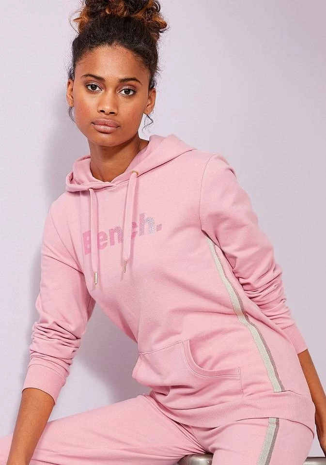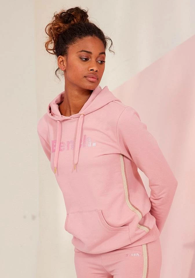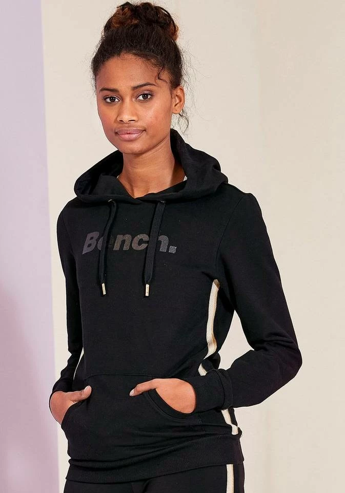 Es gibt Zeiten, in denen möchte man am liebsten den ganzen Tag nur in Pullover und Jogginghose rumlaufen. Mit dem coolen Hoodie von Bench siehst du dabei auch noch fabelhaft aus. Sein sportlicher Stil macht ihn zum perfekten Begleiter für die Freizeit. Seitliche Streifen und ein Logodruck peppen die Optik des Kapuzenpullovers so richtig auf. In der bequemen Kapuze ist ein Kordelzug eingearbeitet. Außerdem hast du die Möglichkeit, in der Kängurutasche Kleinigkeiten zu verstauen. Fühl dich pudelwohl und genieß jede Sekunde mit dem bequemen Hoodie von Bench.