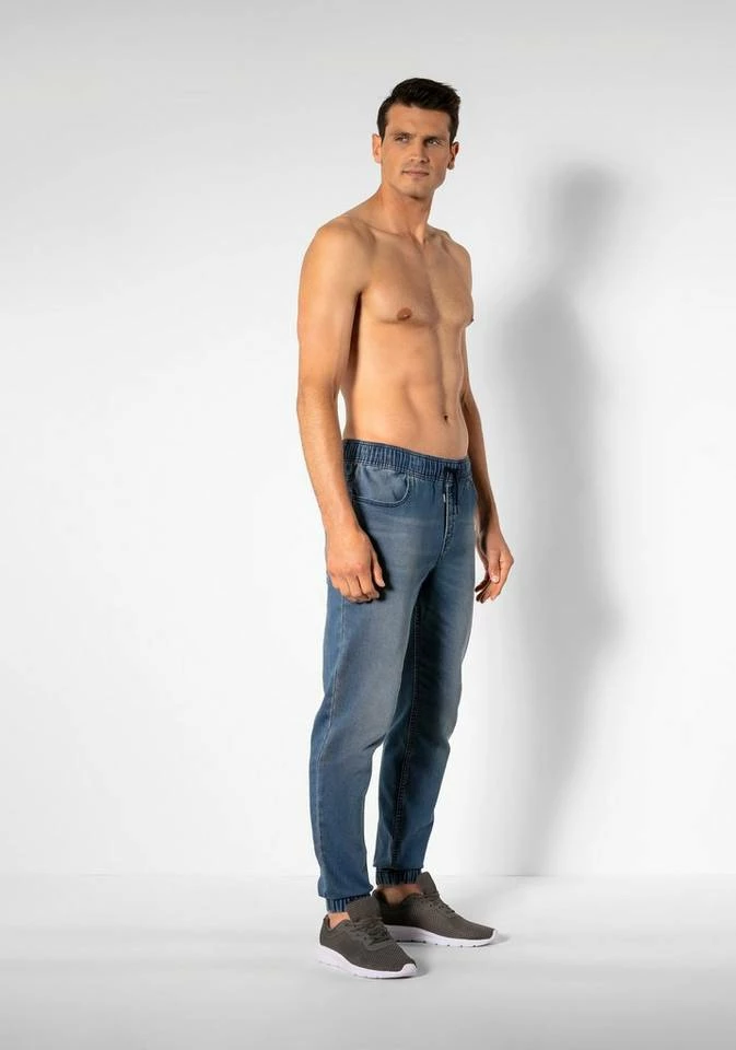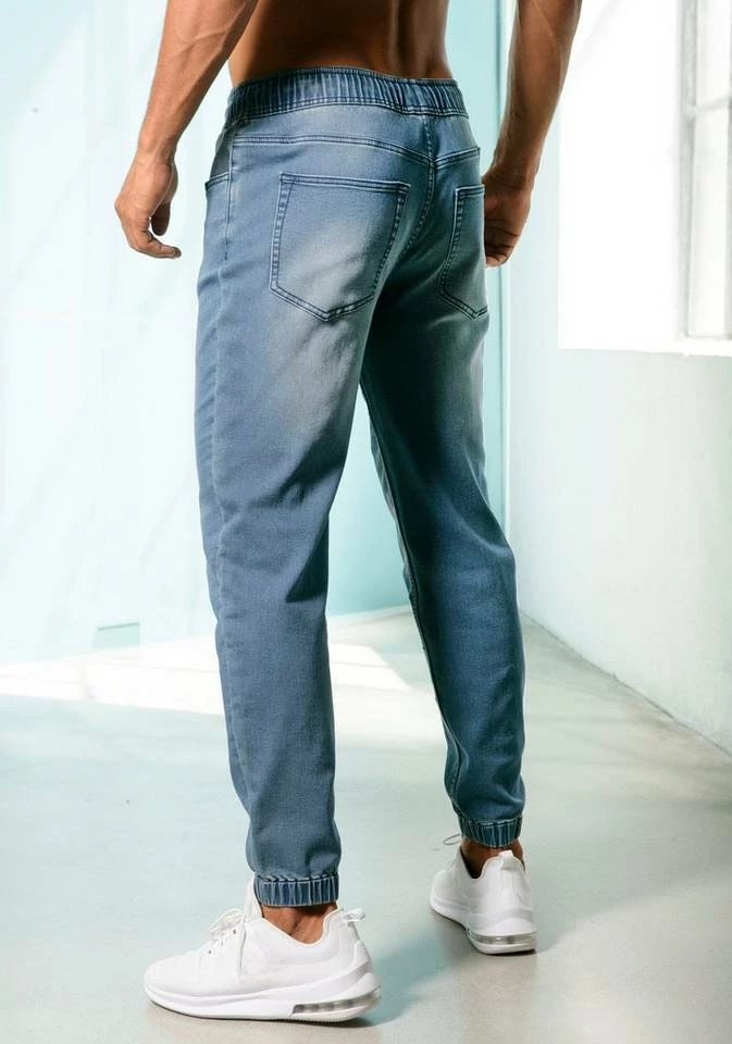 Denim trifft Sweatwear – nicht in Kombination miteinander, sondern in Form eines einzigen Kleidungsstücks. Die Jeans-Joggpants von Bench ist eine Relaxhose, wie man sie nur selten zu Gesicht bekommt. Grund dafür sind das denimähnliche Sweatmaterial, das schön stretchig ist und jeden Tag Komfort spendet, und die insgesamt vier Taschen an dem Jeansjogger. Der umgeschlagene Jeans-Stretchbund mit Bindeband sieht ebenfalls gut aus und trägt sich vor allem überragend bequem. So geht relaxen heute: mit den Jeans-Joggpants von Bench!