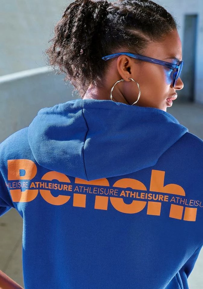 Dieser sportive Look überzeugt! Mit dem Performance-Hoodie von Bench hast du ein super Oberteil für Work-outs im Fitnessstudio oder im Freien. Es ist aus weicher Sweatware gefertigt, hat einen Reißverschluss und begeistert mit zusätzlichen Details. So unterstreicht die Kapuzenjacke ihr legeres Design mit einer Kängurutasche auf der Vorderseite und einem durch Kordelzug flexibel regulierbaren Bund. Ein kontrastfarbener Logodruck auf der Rückseite der Sweatjacke sorgt für einen exzellenten Blickfang. Der Bench Hoodie lässt dich in modische Medaillenränge aufsteigen!