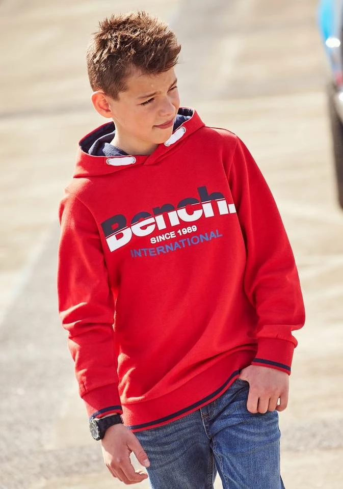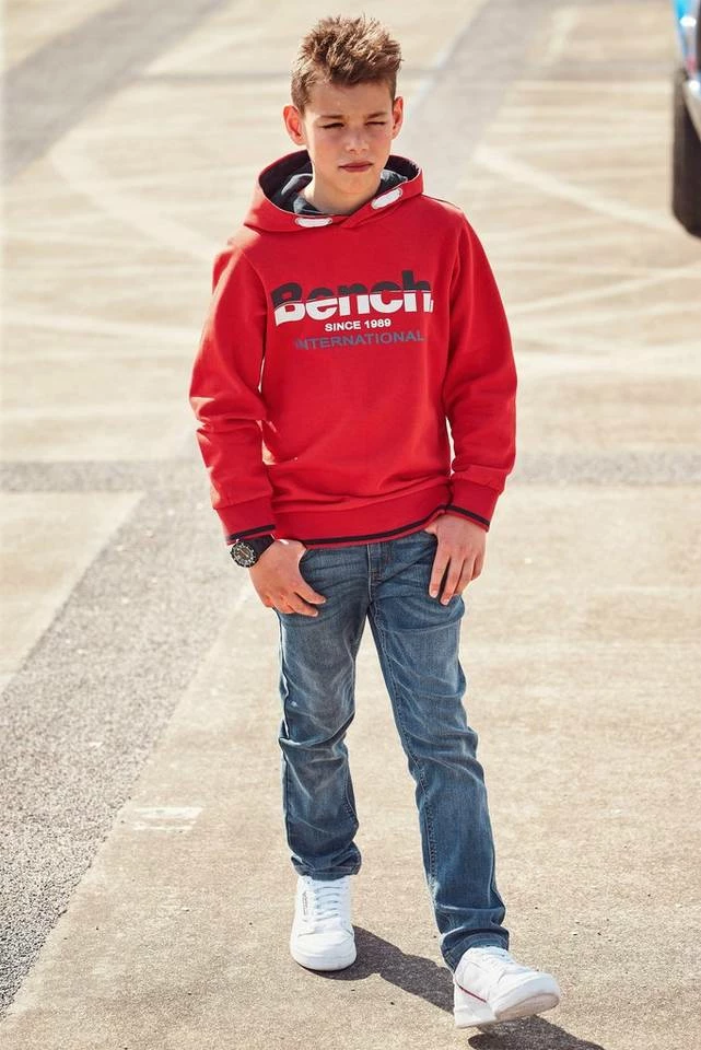 Dieses Kapuzensweatshirt von Bench. inspiriert zu neuen Styles, die im Gedächnis bleiben: Das Kapuzensweatshirt im Streifen-Design ist mehr als ein cooles Basic für Freizeit-Looks. Durch das Design kommt Frische und Pepp in das Gesamtbild. Die Ärmel enden in einem Rippbündchen. Es ist basic geschnitten, sodass sich Teenies frei bewegen können.