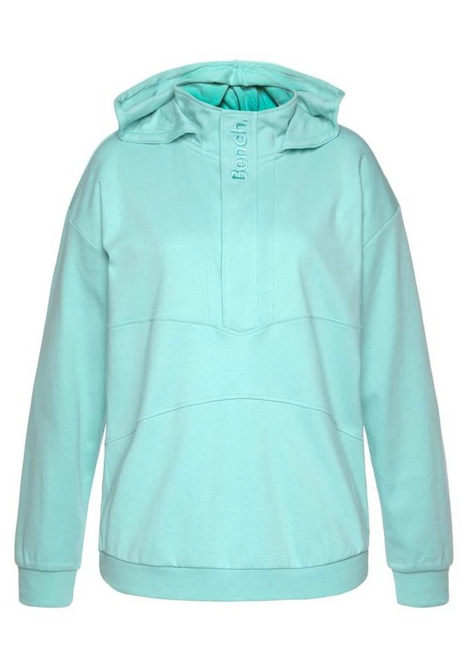 Dieser Kapuzenpullover von Bench schreit förmlich nach lässiger Sportlichkeit. Mit seinem Stehkragen und der großen Kapuze sieht er lässig aus und kann auch modisch auf ganzer Linie mithalten. Ein nettes Detail ist der kleine Reißverschluss am Kragen, der von einer Logoblende überdeckt wird. Lässig umspielt der Hoodie deinen Oberkörper und sorgt mit seiner weichen Baumwollmischung für ein angenehmes Tragegefühl. Ärmel und Saum sind mit elastischen Bündchen versehen. Da fehlen nur noch komfortable Leggings oder eine luftige Jogginghose, um deinen Freizeitlook rund um den Kapuzenpullover von Bench abzurunden.