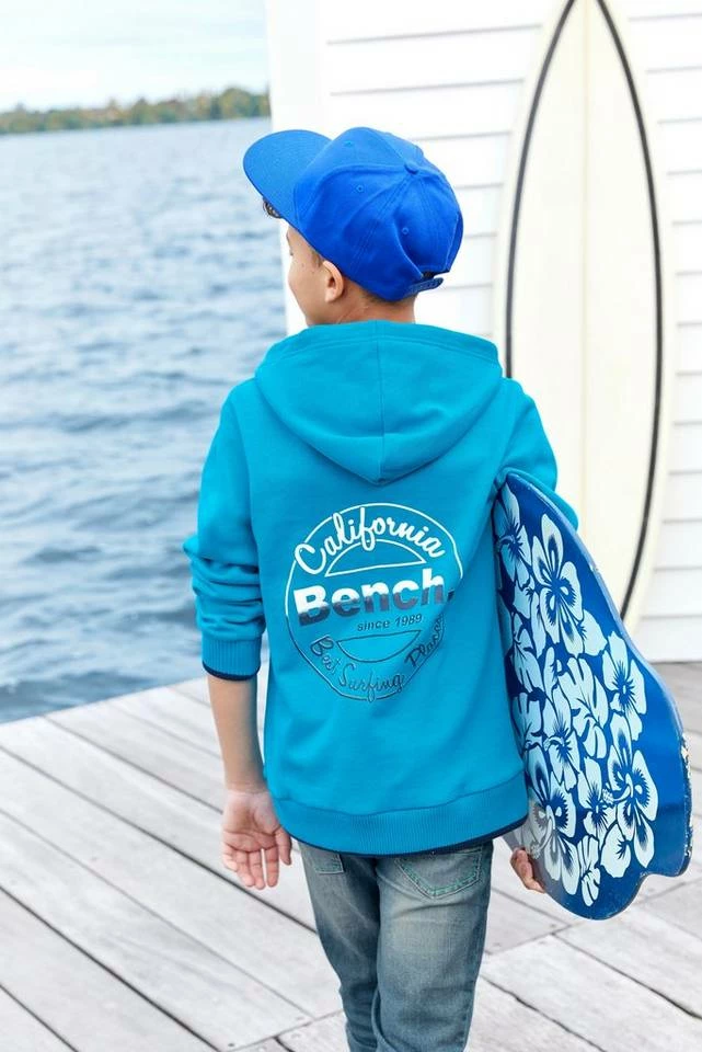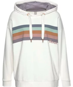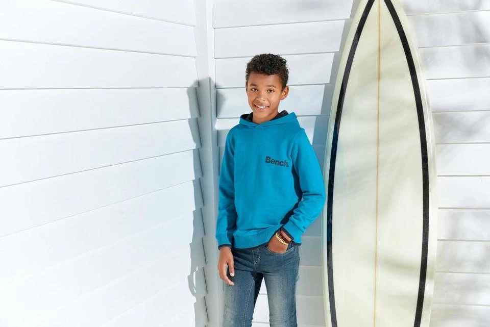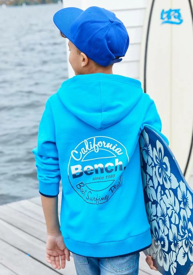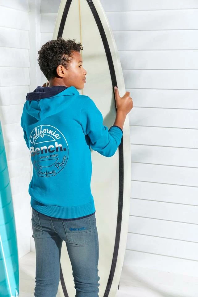 Sportliche Looks schenkt das Kapuzensweatshirt von Bench. Das ist nicht nur der entspannten Passform, der gemütlich gefütterten Kapuze und den Streifen an den Säumen zu verdanken. Vor allem der große Druck im Surferstil auf der Rückseite zieht die Blicke auf sich. Ergänzt wird der um einen kleineren Markenschriftzug vorn. Damit es sich bequem trägt, ist das Kapuzenshirt aus einer angenehmen Qualität hergestellt und verfügt über breit gerippte Bündchen am Saum und an den Ärmeln. In Kombination zu Sweatshirt und Jeans oder Shorts und Sneakers sieht es richtig lässig aus. Coole Outfits für jeden Tag: mit dem bedruckten Kapuzensweatshirt von Bench.