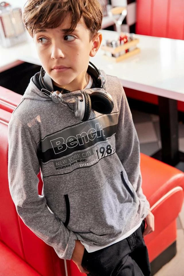 Das Langarmshirt von Bench. ist ein stylisches Essential, um den persönlichen Stil zu finden. Durch den Aufdruck wirkt es trendig und ausgefallen. Das Shirt hat eine Kapuze. Sie hält durch das Innenfutter auch an kalten Tagen warm. Das Shirt hat einen Rundhalsausschnitt und ist basic geschnitten, sodass der Tragekomfort nicht zu kurz kommt. Die Kängurutasche ist genauso praktisch wie bequem: Handy, Schlüssel und Co. können darin verstaut werden und dabei sieht die Tasche auch noch richtig cool aus.