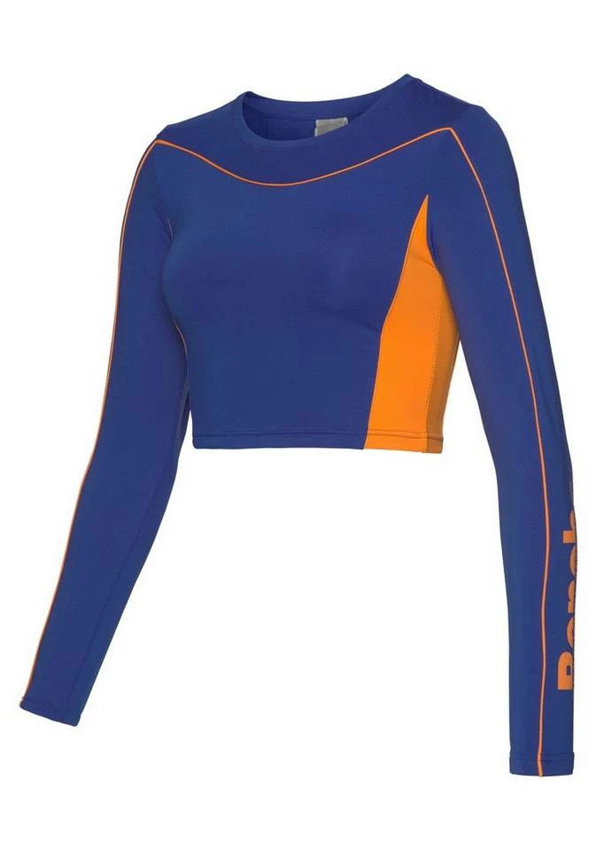 Du legst Wert auf eine erfolgreiche Performance im Studio? Das Crop-Top von Bench unterstützt dich dabei. Mit seinen erstklassigen Eigenschaften wie dem superelastischen Funktionsmaterial und seiner perfekt sitzenden Passform kannst du dich voll und ganz auf dein Training konzentrieren. Durch das kontrastfarbene Piping und den coolen großen Logoprint am Ärmel erhält das Sportoberteil einen klasse Look. Lange Ärmel und ein runder Ausschnitt ergänzen den verkürzten Schnitt des Crop-Tops von Bench. Gönn dir dieses Sporttop der Extraklasse!