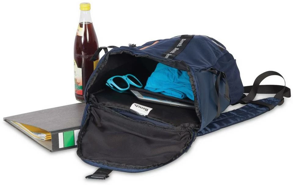 Der Rucksack »Adventure Outdoor, blau« von Bench ist die ideale Wahl für alle deine Unternehmungen. Im geräumigen Hauptfach findet sich Platz für einen Laptop bis zu 14 Zoll und einen schmalen DIN A4-Ordner mit 5 cm Tiefe. In den zwei seitlichen Netztaschen lässt sich optimal eine Trinkflasche verstauen. Außerdem ist er mit einem Reißverschlussfach an der Vorder- und Rückseite ausgestattet. Für besseren Tragekomfort sorgen die gepolsterten und verstellbaren Schultertragegurte und der gepolsterte Rücken. Der Rucksack »Adenture Outdoor, blau« ist perfekt für all deine Unternehmungen!