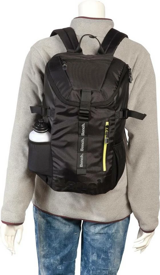 Der Rucksack »Adventure Outdoor, schwarz« von Bench ist die ideale Wahl für alle deine Unternehmungen. Im geräumigen Hauptfach findet sich Platz für einen Laptop bis zu 14 Zoll und einen schmalen DIN A4-Ordner mit 5 cm Tiefe. In den zwei seitlichen Netztaschen lässt sich optimal eine Trinkflasche verstauen. Außerdem ist er mit einem Reißverschlussfach an der Vorder- und Rückseite ausgestattet. Für besseren Tragekomfort sorgen die gepolsterten und verstellbaren Schultertragegurte und der gepolsterte Rücken. Der Rucksack »Adventure Outdoor, schwarz« ist perfekt für all deine Unternehmungen!