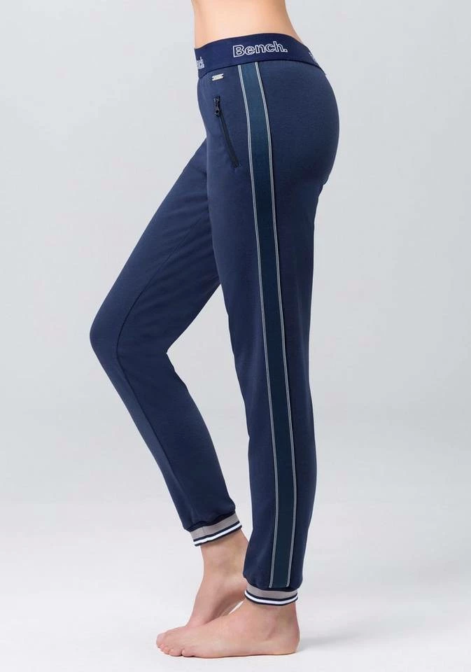 Schwing die Hüften: Ob auf der Tanzfläche oder deinem Sofa ist mit den Relaxpants von Bench ganz dir überlassen. Ein breites Labelgummi dient als Bund und macht jede Bewegung mit. Die Seitenstreifen strecken optisch das Bein und verleihen der gemütlichen Hose eine coole Note. Die langen, figurumschmeichelnden Hosenbeine werden am Saumabschluss von farbigen Strickbündchen leicht gekräuselt. In zwei Reißverschlusstaschen kannst du Hände oder Kleinigkeiten verstauen, während das superweiche Material sich kuschelig anschmiegt. Die Relaxpants von Bench sind zum Wohlfühlen gemacht.