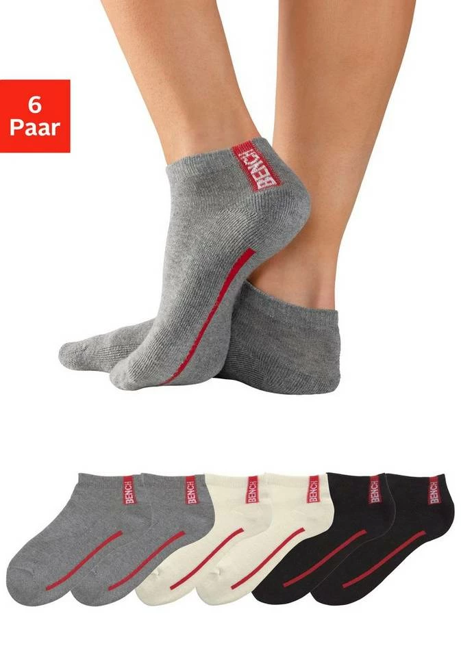Für Sneakerfans sind die Sneakersocken von Bench ein absolutes Muss! Die Socken verschwinden dank ihrer kurzen Schnittform perfekt im Schuh. Dank des weichen Fußfrottees tragen sich die kurzen Strümpfe auch superangenehm. Abgerundet werden die schlichten Socken durch ein eingestricktes Bench-Logo an der Seite. Ein unverzichtbares Basic: die Sneakersocken von Bench!