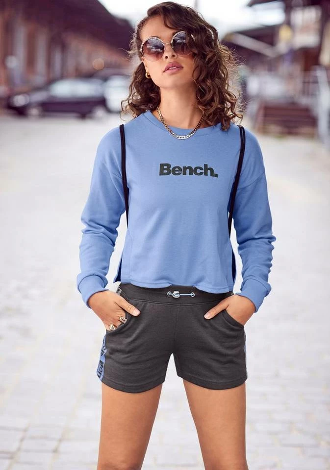 Schnapp dir dein It-Piece. Das kurze Sweatshirt von Bench wird garantiert zum unverzichtbaren Basic für deine Looks. Der Sweater aus einem hochwertigen Baumwoll-Mix hat modisch so einiges zu bieten: Neben einem superbequemen, weiten Rundhalsauschnitt und lässig überschnittenen Ärmeln sorgen seine kurze Form und die seitlichen Schlitze für modische Finesse. Die elastischen Bündchen an den Ärmeln machen jede deiner Bewegungen mit und ein konstrastfarbener Logoprint auf Brusthöhe setzt modische Akzente. Ob zu Jeans oder Shorts – das kurze Sweatshirt von Bench rockt!