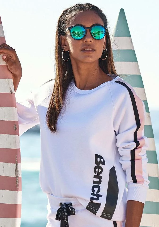 Trendige Passform und cooles Design – all das vereint das lässige Sweatshirt von Bench. Toll in Szene setzt sich dabei der Logogdruck vorn an der Seite und bildet zusammen mit den Streifen auf den Raglanärmeln einen coolen Kontrast zum restlichen Farbdesign. Die weiche Baumwollmischung trägt außerdem ihren Teil dazu bei, um das Oberteil zu einem trageangenehmen Begleiter für dein Freizeitoutfit zu machen. Was dir nun noch fehlt, sind gemütliche Leggings oder eine Jogginghose und schon kannst du mit dem Bench-Sweatshirt ab aufs Sofa.