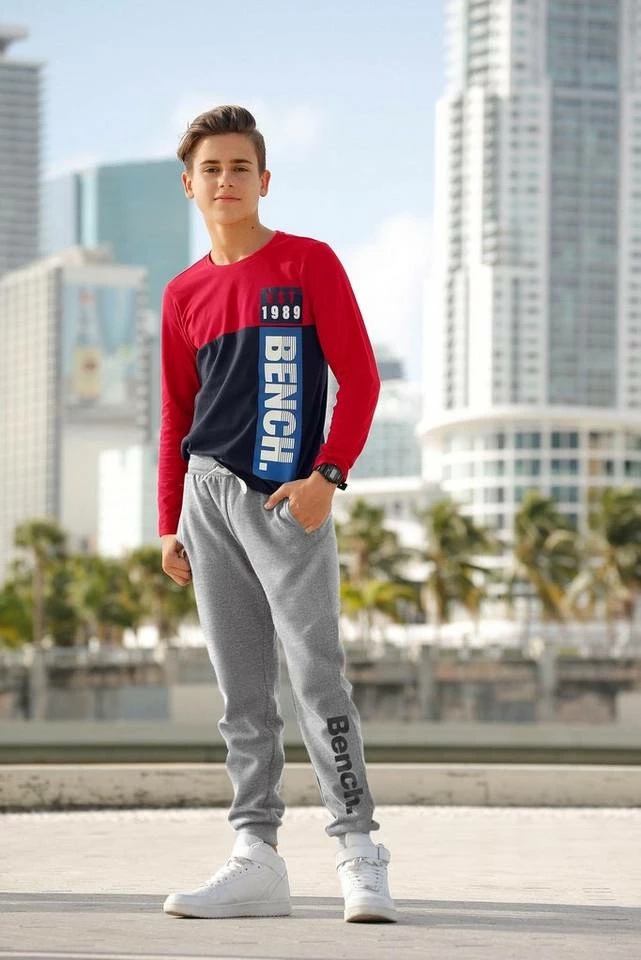 Trend-Piece für den Junior! Die coole Sweathose von Bench ist ein absoluter Hingucker und gleichzeitig ein echtes Wohlfühl-Essential für Jungs. Mit seitlichem Logoschriftzug und den praktischen Leistentaschen ist die lässige Jogginghose ein toller Begleiter für Sport und Freizeit. Dank weicher Baumwollmischung trägt sich die Jungshose superangenehm auf der Haut, der verstellbare Bund mit Kordelzug und die soften Rippbündchen an den Beinsäumen bieten dazu eine perfekte Passform und optimale Bewegungsfreiheit. Ein T-Shirt mit angesagtem Frontprint und eine Kapuzenjacke sind die perfekte Ergänzung. Die Sweathose in toller Markenqualität von Bench begeistert den Nachwuchs als neuer Favorit!