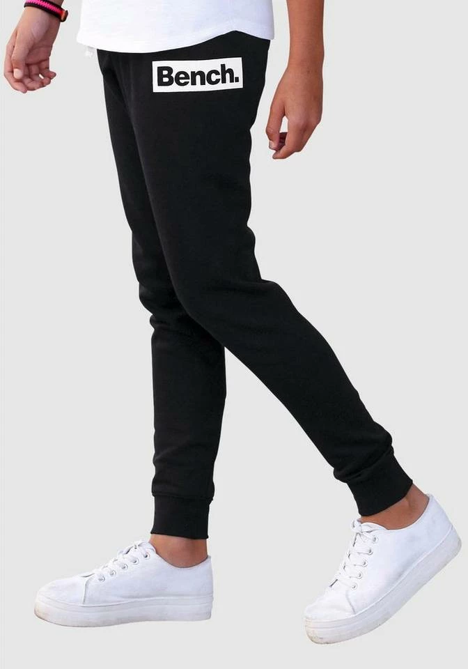 Die erste Wahl für lässige Freizeit-Looks oder Schulsport: die Jogginghose von Bench. Für maximalen Komfort sorgt der elastische Bund mit Ringelmuster. Dieser ist mit einem Kordelzug weitenverstellbar und daher superbequem. Ein Logodruck auf dem linken Hosenbein setzt einen coolen Akzent. Das schmal zulaufende Bein mit breiten Rippbündchen an den Abschlüssen rundet den Hosenstyle ab. Outfits mit T-Shirt und topangesagten Sneakers werden mit diesen Sweatpants erst recht zum Hingucker. Bequem und stylisch: die Jogginghose von Bench.