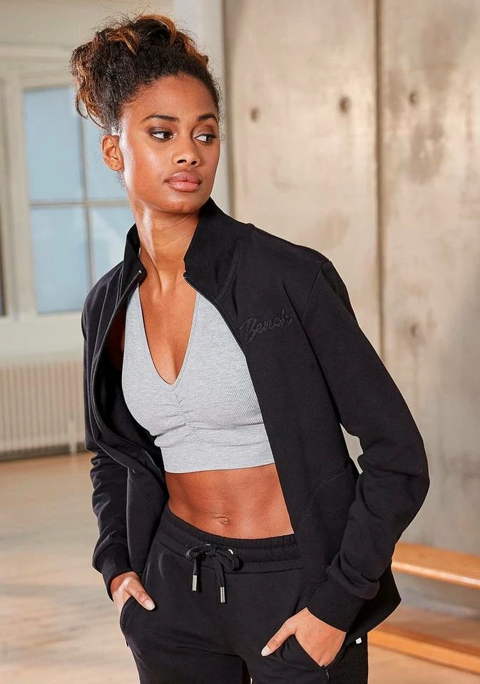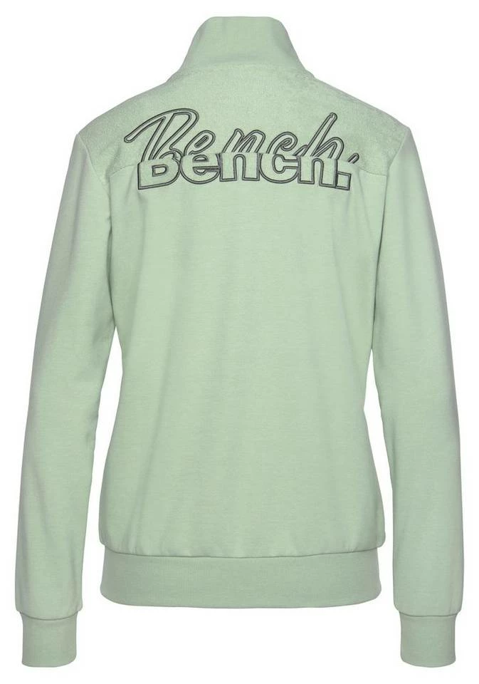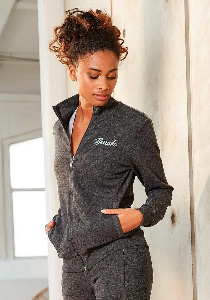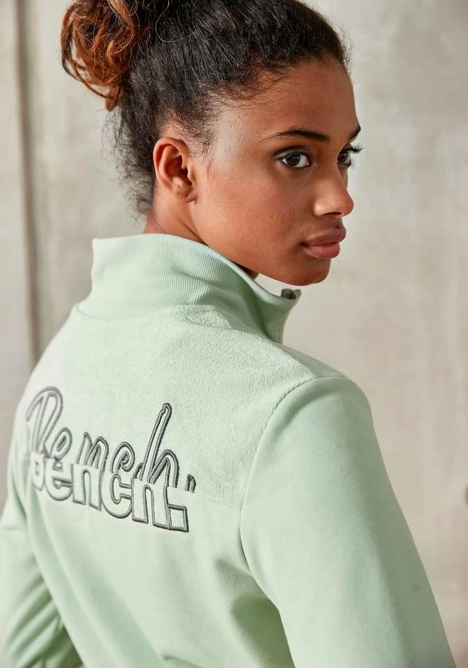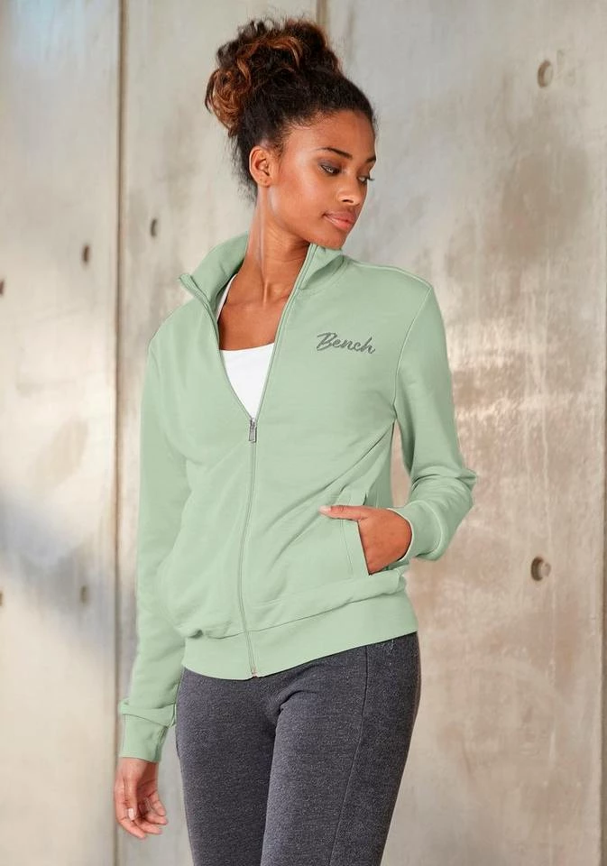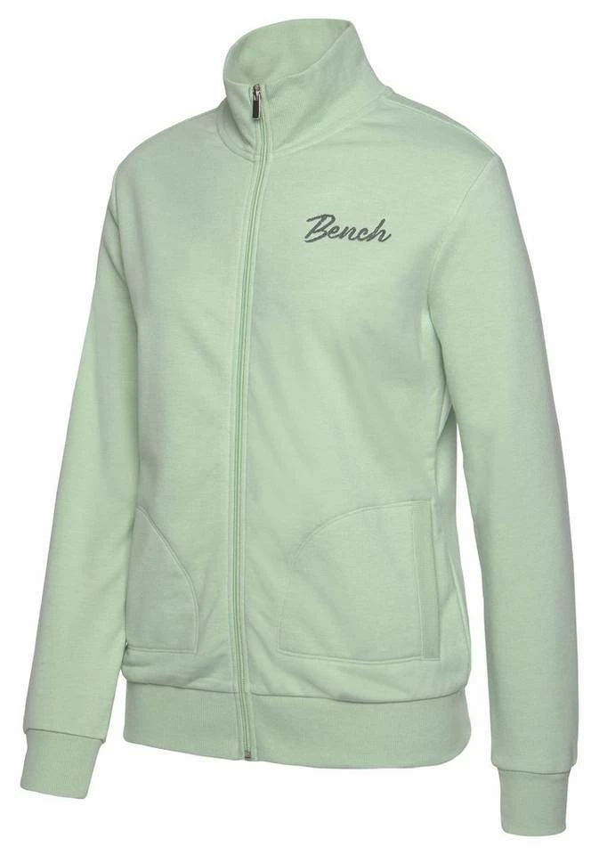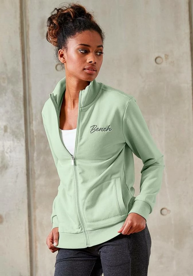 Ein Klassiker für legere Looks! Die Sweatjacke von Bench gehört in jeden Kleiderschrank und begeistert mit ihrer Vielseitigkeit. Du kannst sie tragen, wenn im Sommer abends ein kühles Lüftchen weht oder dir der Sinn nach einem bequemen Freizeitoutfit steht. Ein hübsches Detail ist der kleine Stehkragen. Saum und Ärmel der Reißverschlussjacke sind mit elastischen Rippbündchen ausgestattet. Der Feierabend ruft schon. Mach es dir richtig bequem und wirf dir zu deiner lässigen Jogginghose die Bench-Sweatjacke über!
