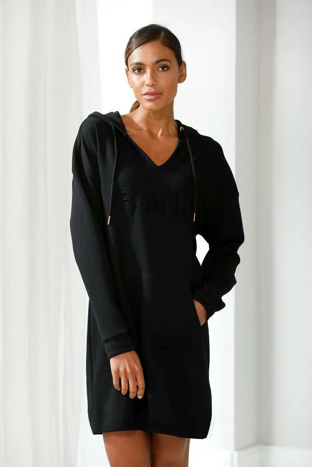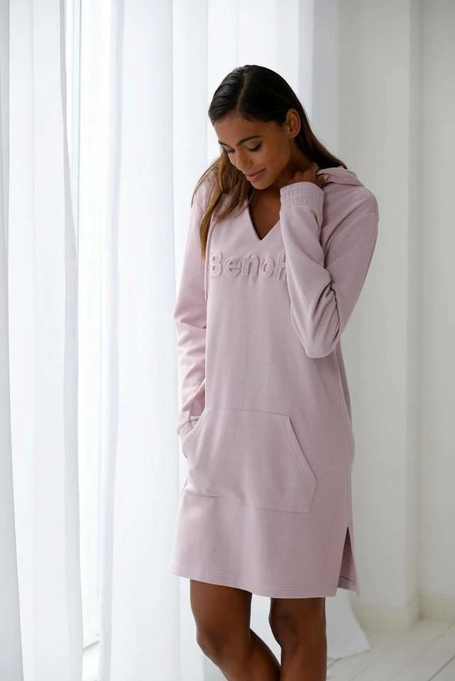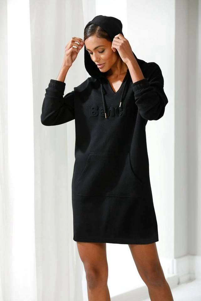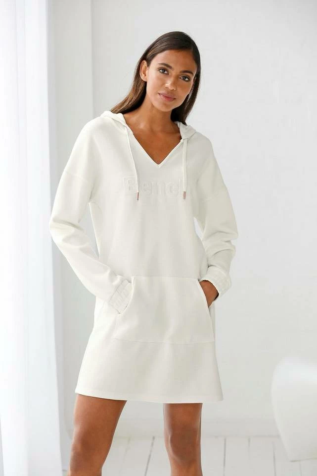 Wenn du Kleider liebst, aber auf einen sportlichen Style nicht verzichten möchtest, kommt das Sweatkleid von Bench im sportlichen Look und in angesagter Piqué-Qualität wie gerufen. Die kuschelweiche Sweatqualität, die durch Einsatz von Modal zustande kommt, wird dich mit ihrem angenehm weichen Tragegefühl begeistern – genauso wie die sportiven Details wie V-Ausschnitt, große Kapuze und die Kängurutasche vorn. Jeansjacke und Turnschuhe machen den Wochenend-Style perfekt. Schlüpf rein, probier‘s aus und genieß den hohen Wohlfühl-Faktor des lässigen Sweatkleides von Bench.