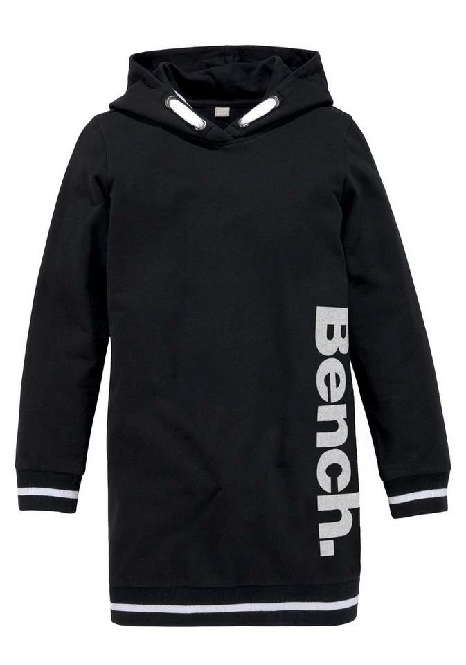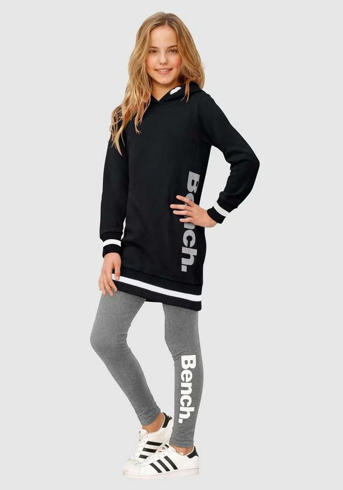 Das sportliche Sweatkleid von Bench für Mädchen besticht mit einem großen, reflektierenden Logoprint. Kontrastiv erscheinen auch die schmalen Streifen an den Rippbündchen, die dem lässigen Kleid eine optimale Form verleihen, sowie die Zierkordeln an der Kapuze. Einen ausgezeichneten Tragekomfort verspricht bei jeder Aktivität die leichte, innen weich angeraute Qualität des Freizeitkleides. Ob zu Leggings und Sneakers oder als kuschelige Beachwear über Bademoden – das coole Sweatkleid von Bench für Mädchen ist ein sehr gemütliches Trendoutfit!