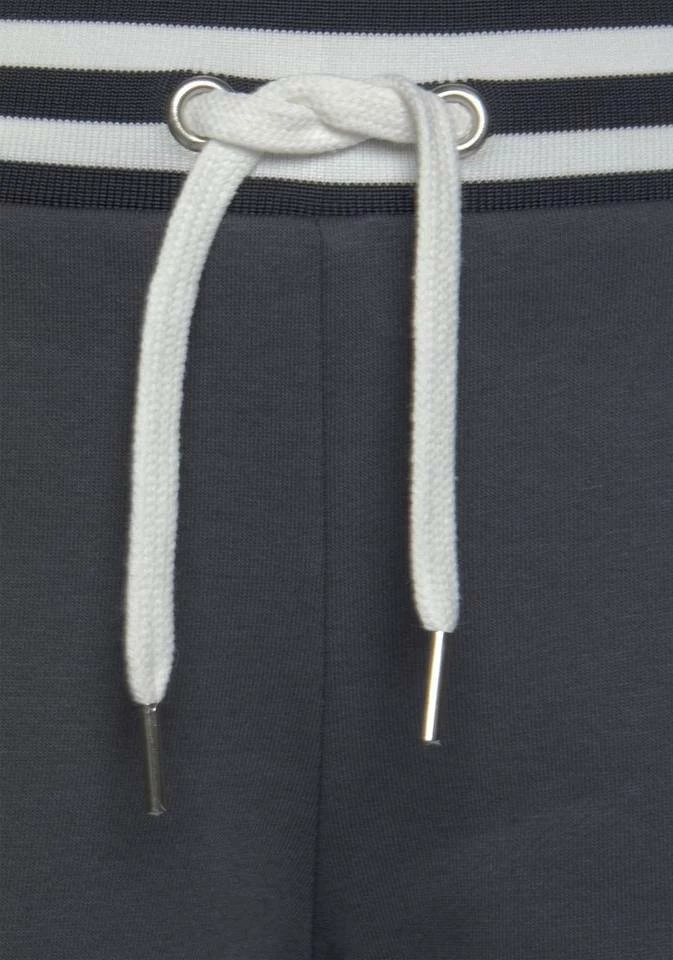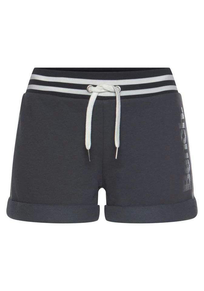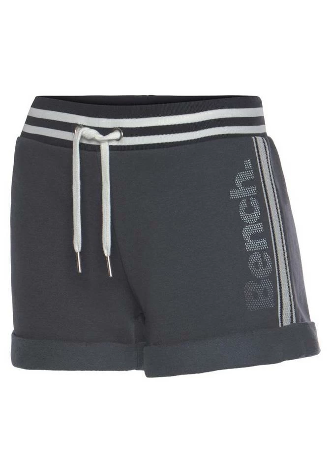 Wohlfühl-Mode hoch zehn: Mit den Sweatshorts bietet dir die Trendmarke Bench einen femininen und gleichzeitig bequemen Style. Das kontrastierende Streifendesign am Bund mit Kordelzug und die seitlichen Streifen am Bein verbinden sich mit dem gekrempelten Saum der Shorts zu einem coolen Athleisure-Look. Ein glänzender Logoprint rundet die bequeme kurze Hose raffiniert ab. Jetzt fehlt nur noch dein Jerseyshirt und das Relaxen auf der Coach kann beginnen. Richtig lässig – die Sweatshorts von Bench.