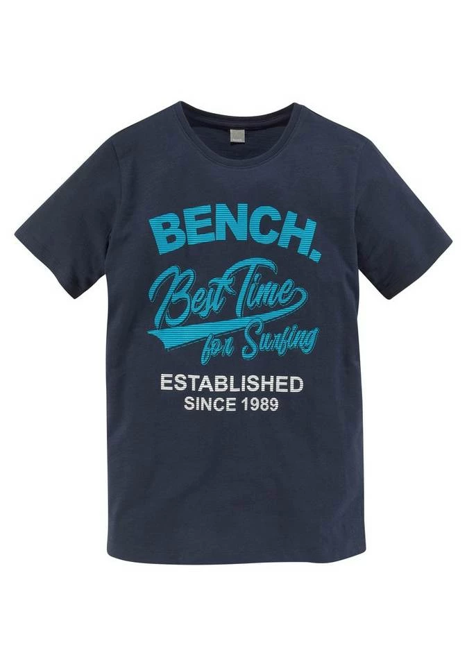 Einen Hauch Retro bringt das T-Shirt von Bench mit. Neben dem großen Markennamen findet sich auch Schriftdruck im coolen Vintagestil auf der Vorderseite und verleiht dem Shirt seinen Charme. Die gerade Basicform mit Rundhalsausschnitt und kurzen Ärmeln lässt sich vielseitig in die Alltagsmode integrieren. Zum Komfort trägt neben dem Schnitt auch die angenehme Qualität bei. Mit Cargohosen und Schnürboots oder ganz klassisch zu Jeans und Sneakers kommt das Jungen-T-Shirt bestens zur Geltung. Lässiges Basic mit angesagtem Print: das T-Shirt von Bench.