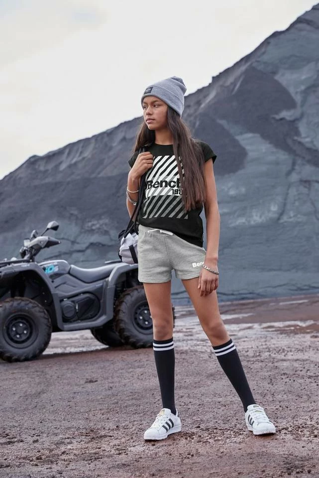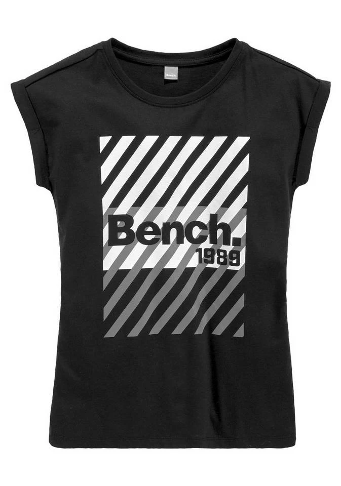 Das T-Shirt von Bench. bildet die Grundlage für jedes stilsichere Outfit. Es wirkt mit dem Logodruck individuell und trendy. Die kurzen Ärmel enden in einem Aufschlag. Das Shirt hat einen Rundhalsausschnitt und ist hüftbedeckend sowie weit geschnitten, sodass sich Teenies frei bewegen können.