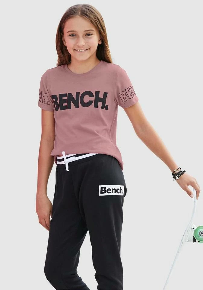 Ein tolles Basic für lässige Casual-Looks ist dieses T-Shirt von Bench für Mädchen. Kontrastive Logoschriftzüge vorn sowie auf den beiden kurzen Ärmeln setzen das Shirt cool in Szene. Hohen Tragekomfort verspricht dazu seine weiche Qualität. Und die leicht taillierte, bequeme Passform des modischen Jerseyshirts mit klassischem Rundhalsausschnitt unterstreicht den rundum angenehmen Fit. Perfekt zu angesagten Denims oder Jogpants – das sportliche T-Shirt von Bench für Mädchen!