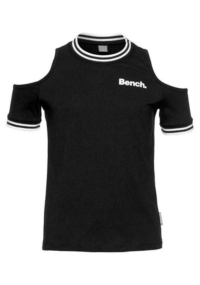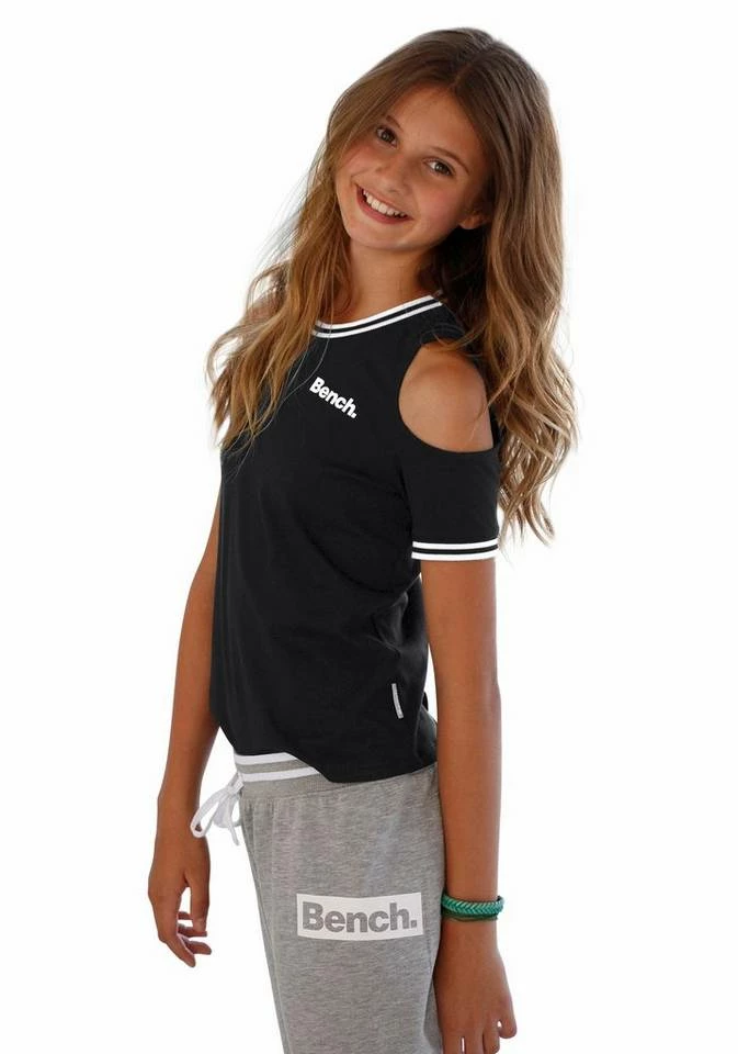 Ganz nach dem Motto »weniger ist mehr« hat das T-Shirt von Bench mit Aussparungen an der Schulterpartie seinen ganz großen Auftritt. Die modische Komponente wird bei dem Cut-out-Oberteil von geringelten Bündchen an Rundhalsausschnitt und Ärmelsäumen raffiniert begleitet. Der zu dem Kontrastprogramm passende Logodruck komplettiert das Design und für Komfort ist durch die weiche Baumwollqualität gesorgt. Mit farblich abgestimmten Hosen in schmaler Passform lassen sich tolle Looks kreieren. Das schulterfreie T-Shirt von Bench – ein Stylegarant für Schulalltag und Freizeitabenteuer!