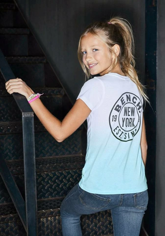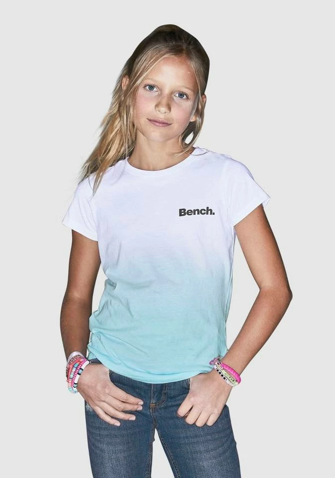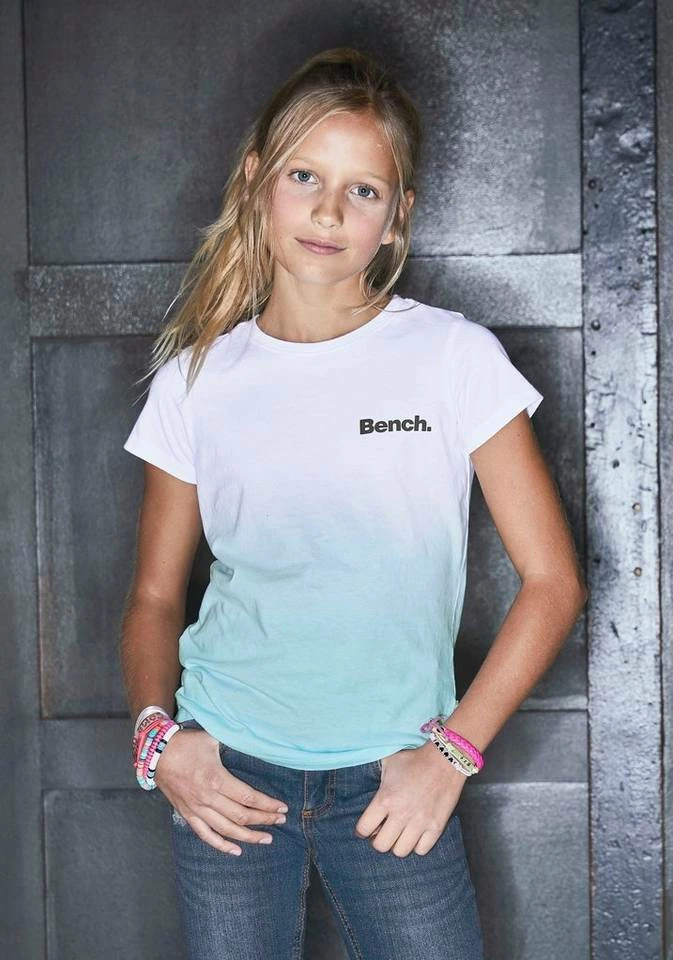 Das T-Shirt von Bench kann gleich mit mehreren schönen Details überzeugen. Zum einen ist da der Print auf der Rückseite, der mit seiner großen Emblemform für einen echten Hingucker sorgt. Zum anderen ist das Shirt im angesagten Dip-Dye-Look gestaltet, das jedes Teil zu einem Unikat macht. Zudem findet sich vorn ein kleiner Markenschriftzug. Zu Shorts, Jeans oder Latzrock ist es der richtige Fashionpartner. Das T-Shirt von Bench zieht die Blicke auf sich!