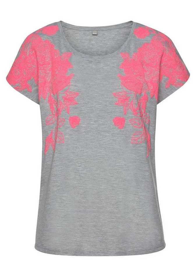 Das Strandshirt von Bench hat in Sachen Print etwas ganz Besonderes zu bieten. Bei dem leicht melierten Rundhalsshirt ist der Druck in gummierter Form an den leicht überschnittenen Schultern zu finden. Der weiche Viskosemix fühlt sich luftig leicht an, das Shirt ist daher das Richtige für einen unbeschwerten Tag. Einfach mit klassischen Bluejeans und deinen liebsten Sneakers kombinieren und fertig ist der unkomplizierte Daily-Look. Für die Entspannten unter euch – das T-shirt von Bench.
