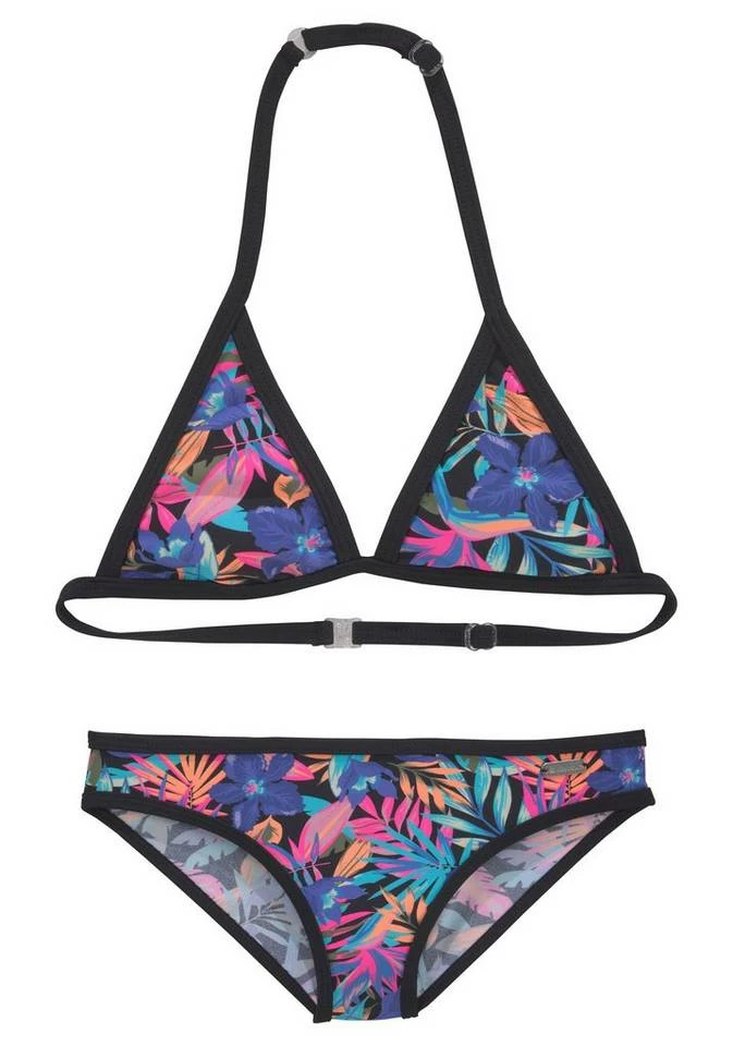 Farbenfroh heißt das Motto des Triangel-Bikinis von Bench. Das elastische Material wurde dafür mit einem bunten Print versehen, der an die Karibik erinnert. Verstellbare Träger im Nacken und im Rücken lassen sich individuell auf deine Figur einstellen. Das Bikini-Top lässt sich sowohl im Nacken als auch im Rücken öffnen und schließen. Verlier keine Zeit und wage den Sprung ins kühle Nass: mit dem Triangel-Bikini von Bench.
